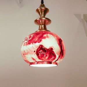 Contemporary Red Blue Marble Globe Glass Ceiling Hanging Light